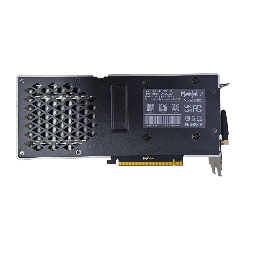 Magicminer BG02, optimized for the SHA-256 mining algorithm from Magicminer, comes with a maximum hash rate of 7TH/s for a power consumption of 150W. With an efficient air cooling system, BG02 dissipates heat effectively, preventing machine overheating while aiding an excellent energy efficiency of 21.43 j/Th.